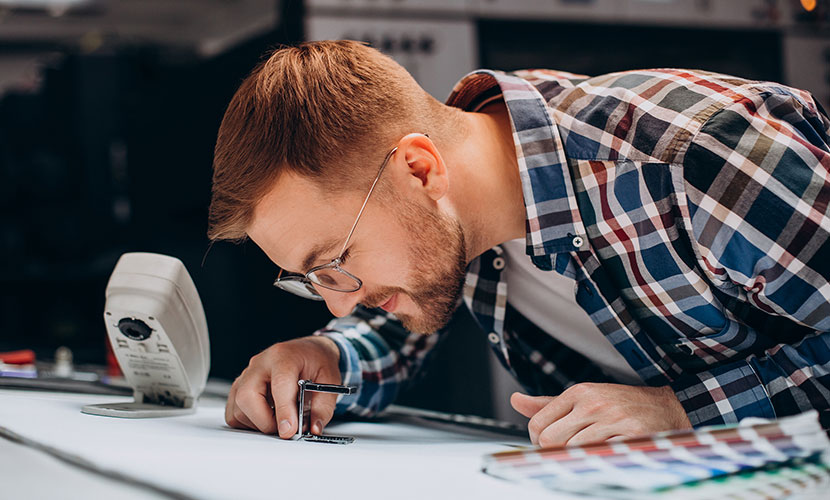 Gravure printing is the one process which offers the designer the opportunity of achieving a complete, continuous color deposit ranging from 100 percent full tone down to almost a 5 percent tone. Gravure is the costliest manufacturing process since the cylinder used requires copper plating and a special photochemical engraving or etching process. Printing is accomplished via tiny cells or ink reservoirs that are engraved into the surface of the print cylinder. In contrast to surface printing, with gravure the ink is held within tiny cells engraved into or below the cylinder surface. The deeper the cell, the darker the tone printed. By varying the size and placement of each cell, varying amounts of ink can be deposited onto the wallcoverings by pressing the inked cylinder against the web. Pressure causes the ink to flow from within each cell onto the wallcoverings. This process is the most versatile since it can duplicate a complete range of visual effects, and is able to give an almost photographic effect.